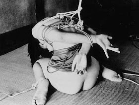 Ce n’est qu'au cours du dix-neuvième siècle qu’apparaissent les premières estampes représentant des femmes ligotées comme ça dans un but érotique le plus souvent nommé Shibari en europe. De nombreux photographes japonais du XXe siècle ont aussi mis à l'honneur cette pratique érotique. Attention , bien sûr, il n'est pas question de réaliser ces entraves sans un minimum de précautions. Pas de corde autour du cou, une bonne paire de ciseaux pour couper les liens en urgence, pas de suspension haute au cas ou les cordes seraient mal fixées, pas de liens trop serrés qui couperaient la circulation sanguine, etc ... La priorité aussi c'est de ne pas s'adonner à ces pratiques avec un(e) inconnu(e). Une confiance absolue est la garantie de la sécurité et de pouvoir s'abandonner à la domination de l'autre avec délice sans oublier le plaisir du(de la) soumis(e). C'est avant tout un jeu!